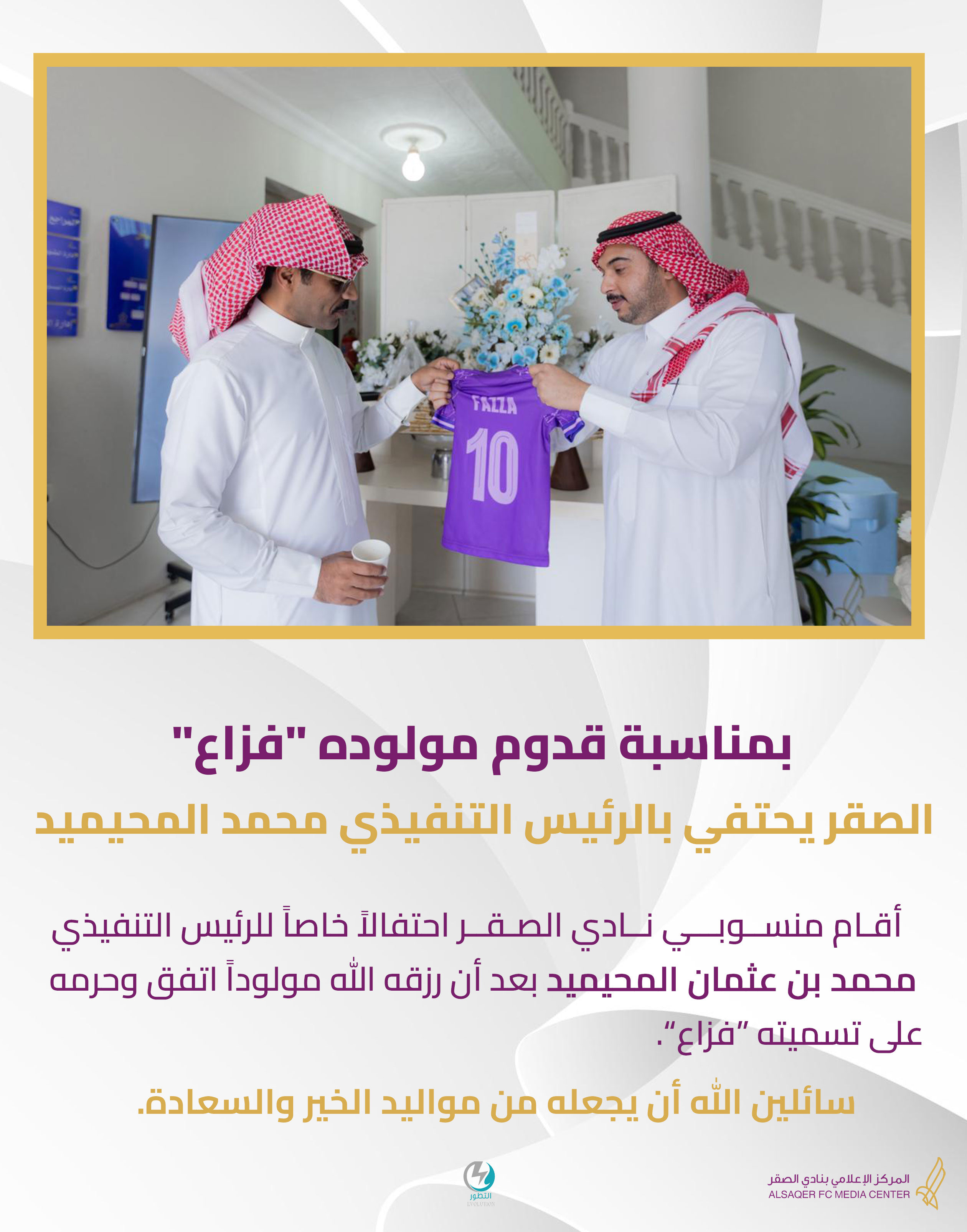 مشاهدة المزيدبمناسبة قدوم مولوده "فزاع" الصقر يحتفي بالرئيس التنفيذي محمد المحيميد #نادي_الصقر💜