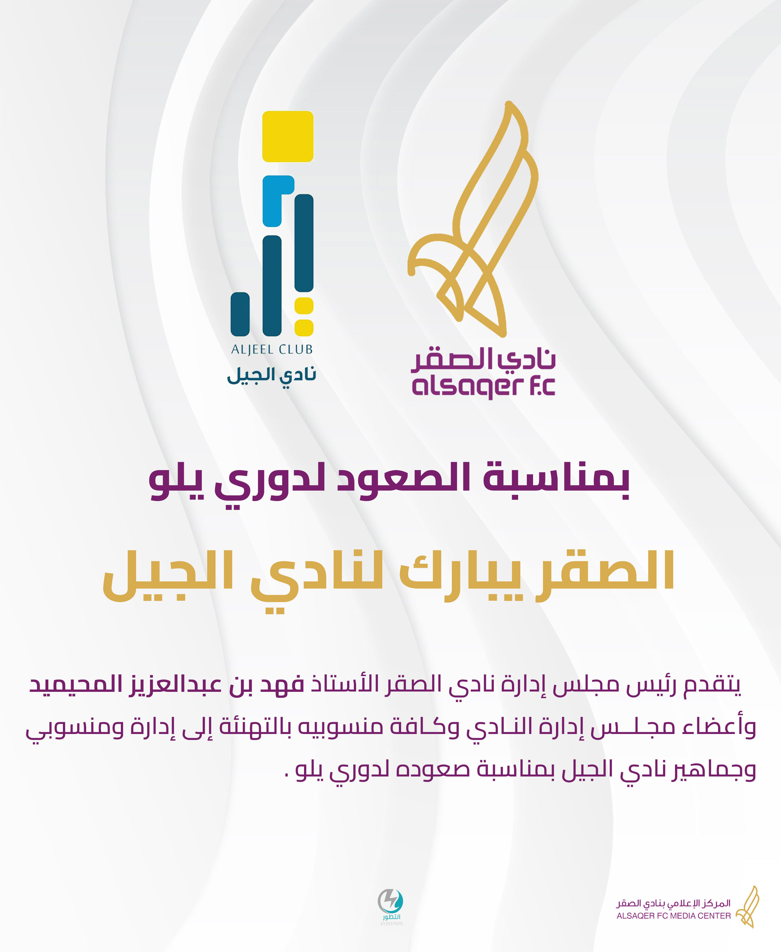 مشاهدة المزيد🗒️| نيابـــة عن جميــع منســوبي نادي #الصقر يتقدم رئيس مجلس الإدارة الأستاذ "فهـد بن عبدالعزيز المحيميد" بالشكر والتقدير لنادي "الجبيل"على كرم الضيافة وحسن الاستقبال.