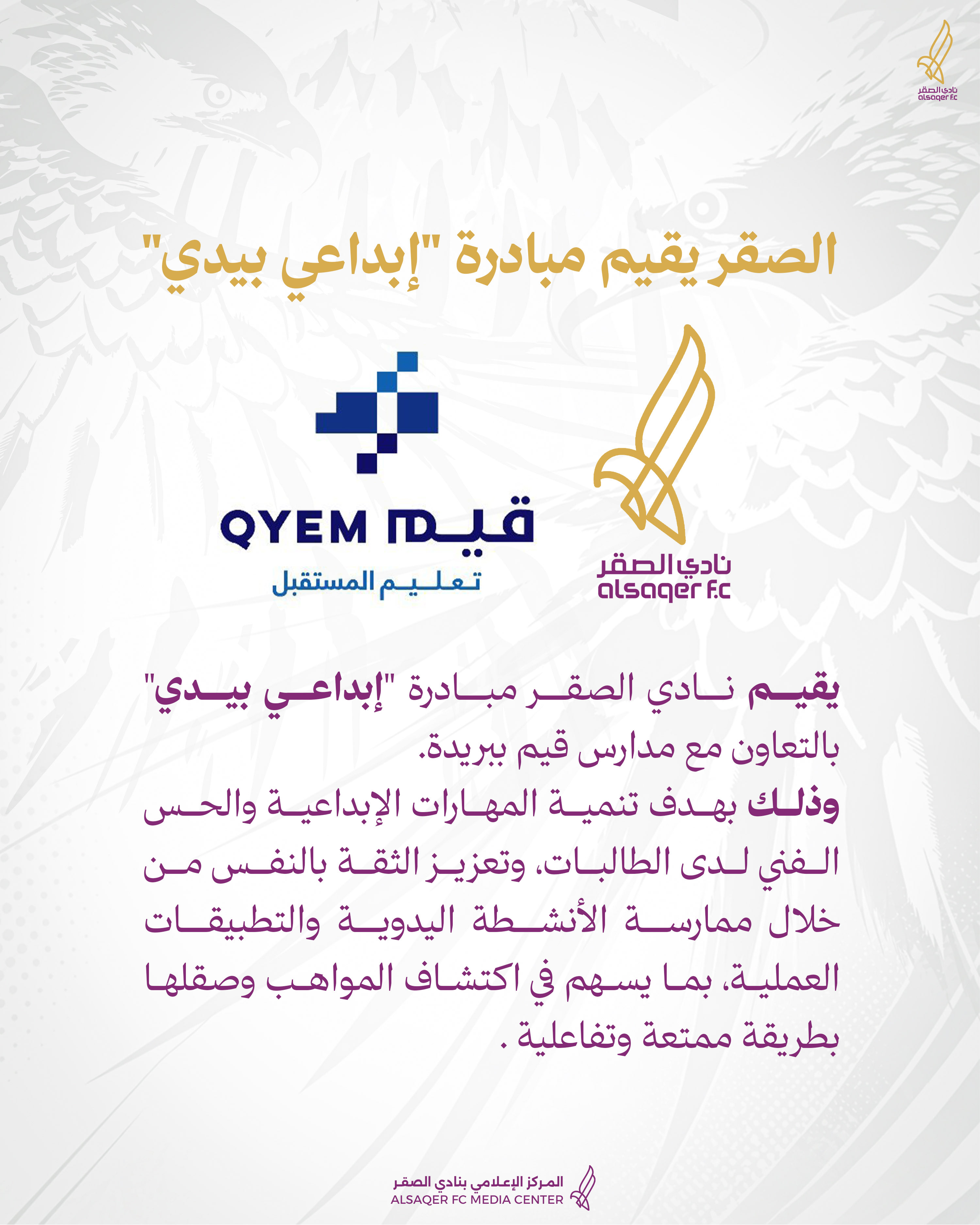 مشاهدة المزيديقيم نادي الصقر فعالية رياضية مجتمعية تحت عنوان 🦅 صقور المستقبل 🦅 لـ⚽️ كرة القدم ⚽️ للتفاصيل ⬇️