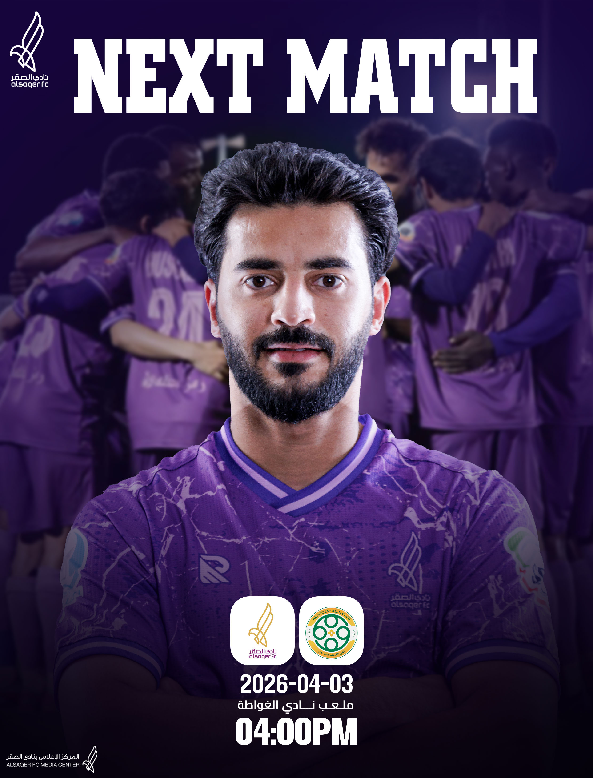 من سعفنا.. خذتنا الهبوب يـمّ أجا والدروب الشامخة الـمـبـاراة الـقـادمـة | NEXT MATCH ⚽️| الغوطة 🆚 الصقر 🗓️ الجمعة 3 أبريل 2026م ⏰ 04:00 مساءً 🏁 الجولة الـ29 🏟️ ملعب نادي الغوطة - #موقق ✈️ #الصقر_الغوطة | #دوري_الدرجة_الثانية | #SDL بالتوفيق لصقــ🦅ــرنا