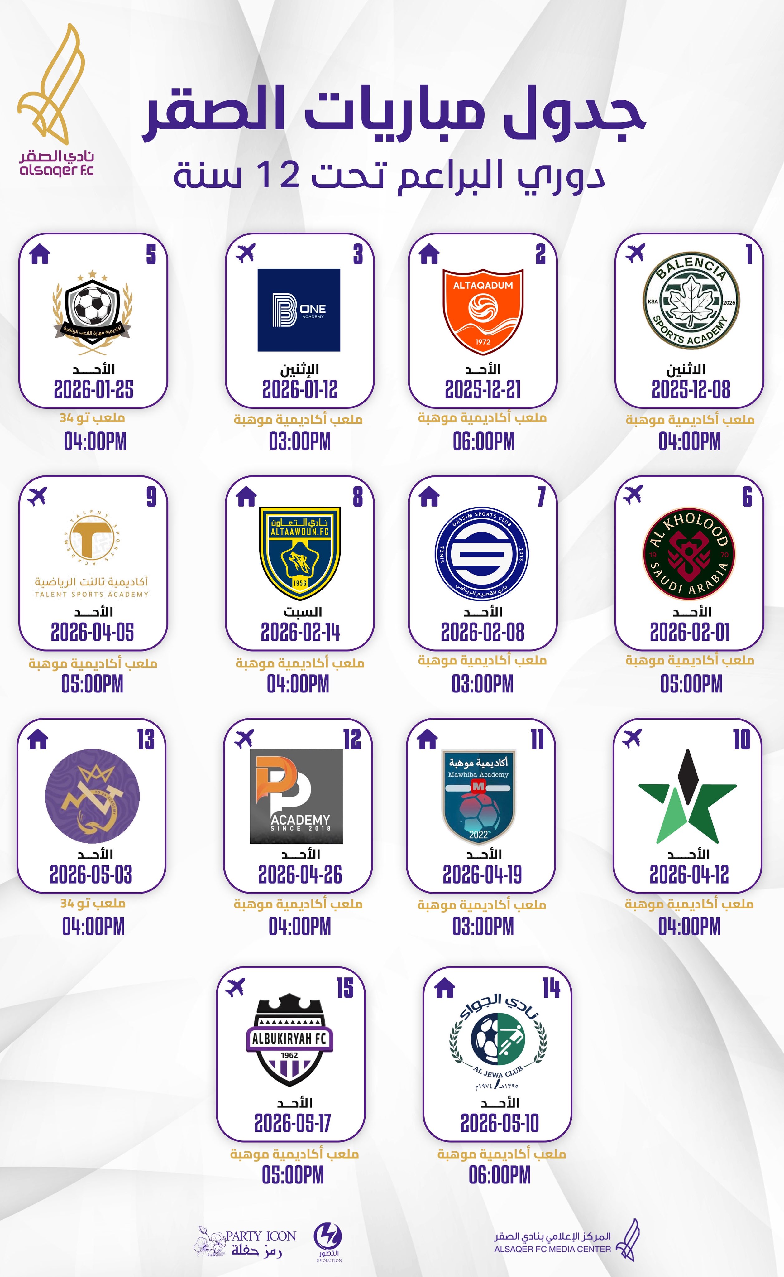 📄| جدول مباريات دوري البراعم تحت "12 عام" #نادي_الصقر💜