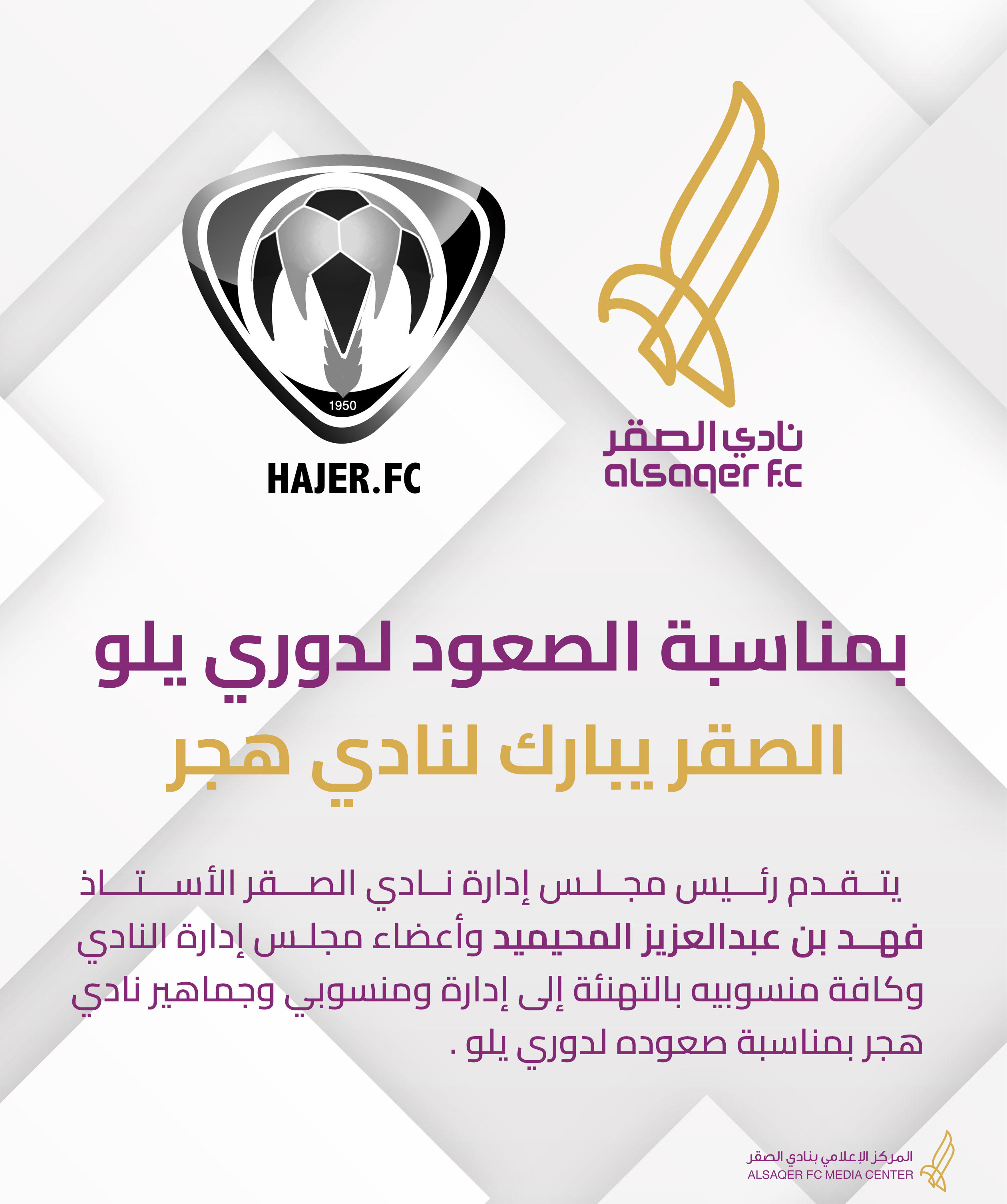 بمناسبة الصعود لـ #دوري_يلو الصقر يبارك لنادي #هجر #نادي_الصقر