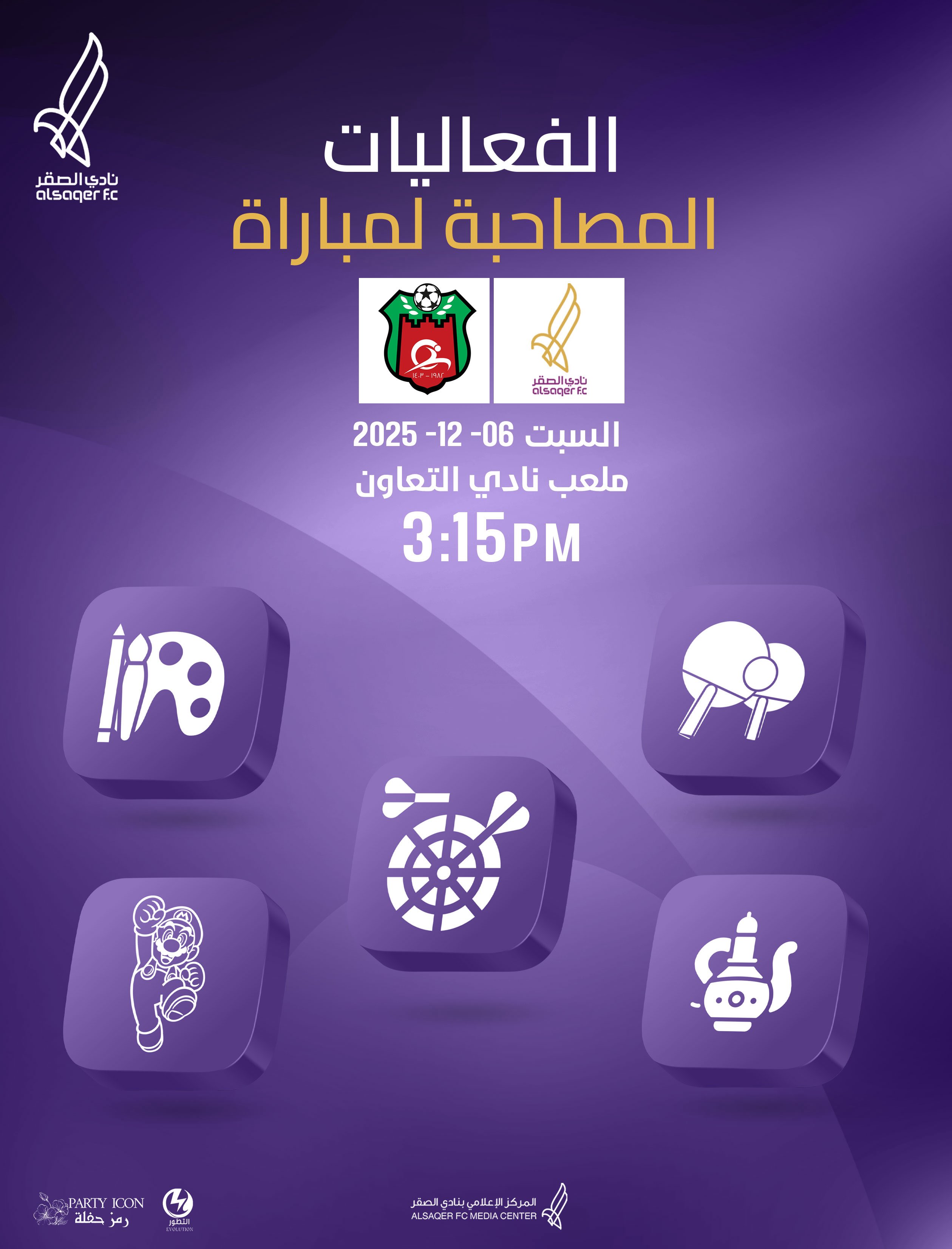 🗒️| عدد من الفعاليات سوف ينفذها #نادي_الصقر بالتزامن مباراة #الصقر_النعيرية غداً في ملعب التعاون.. استمتعوا معنا 🤩🏓🎨🤹🏻♀️🤩 #فعاليات_الصقر
