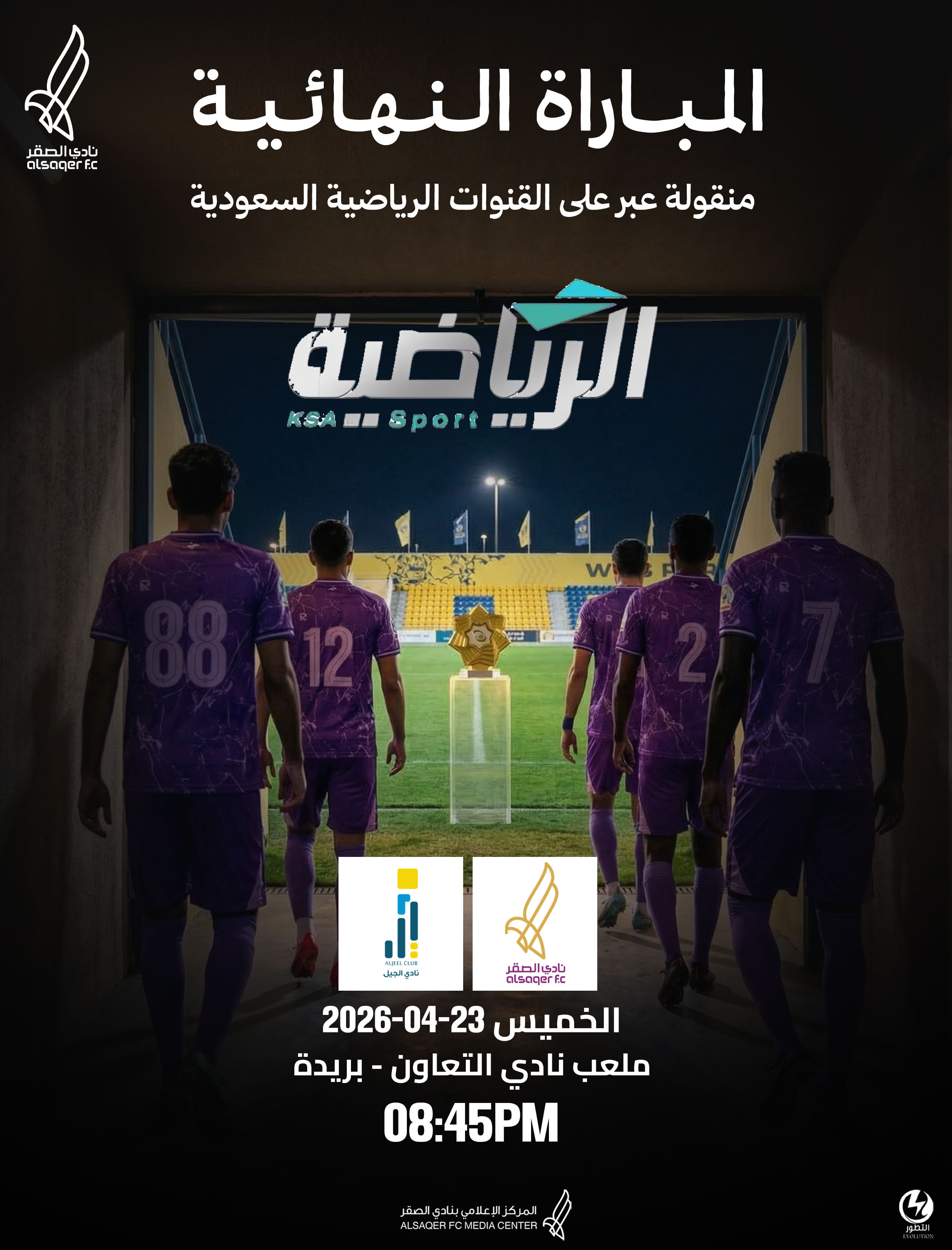 صعدنا بالمجد .. والآن موعدنا مع الذهب🏆 النهـائي | THE FINAL ⚽️ الصقر 🆚 الجيل 🗓️ الخميس 23 أبريل 2026م ⏰ 08:45 مساءً يــلا يـاصـقـ🦅ــر #نادي_الصقر💜