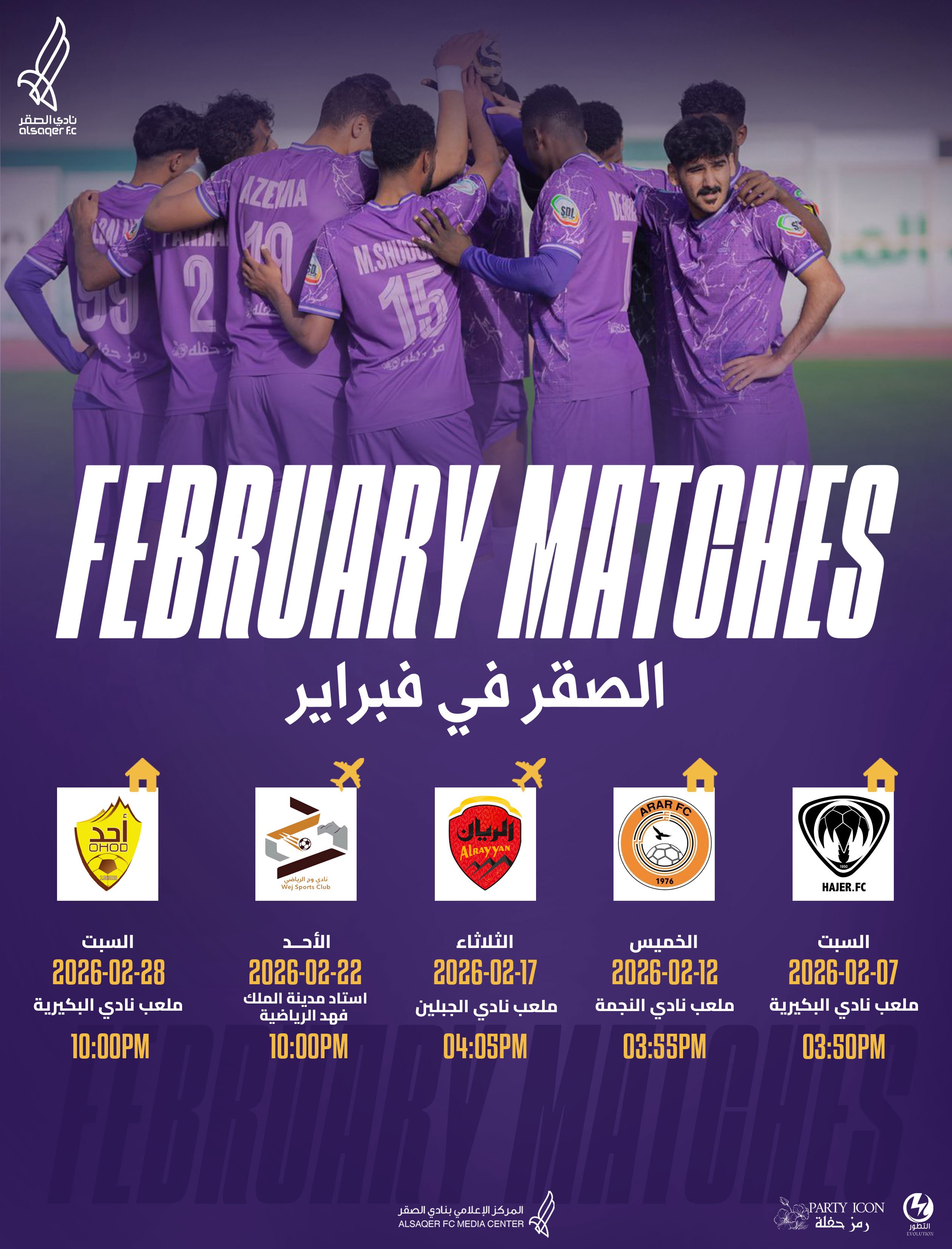 أخبار كرة القدم 🟣 الصقر في فبراير ⚽️ نادي الصقر 01 Feb 07:35 pm 📅 شهر جديد وتحدٍ جديد 💪🏻 الصقــ🦅ــر فــي فبـرا(Feb)يــر💟 #نادي_الصقر