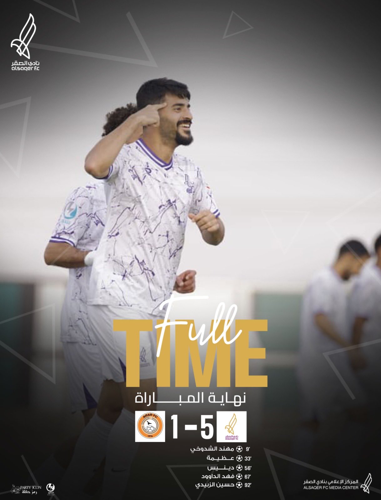 أخبار كرة القدم 🟣 نهاية المباراة 🔚 نادي الصقر 12 Feb 08:26 pm 🟣 صافرة النهاية |🔚 الصقر 5 ✖️ 1 عرعر مبروووووك عشاق صقر القصيم 🤩💜 #الصقر_عرعر | #دوري_الدرجة_الثانية | #SDL