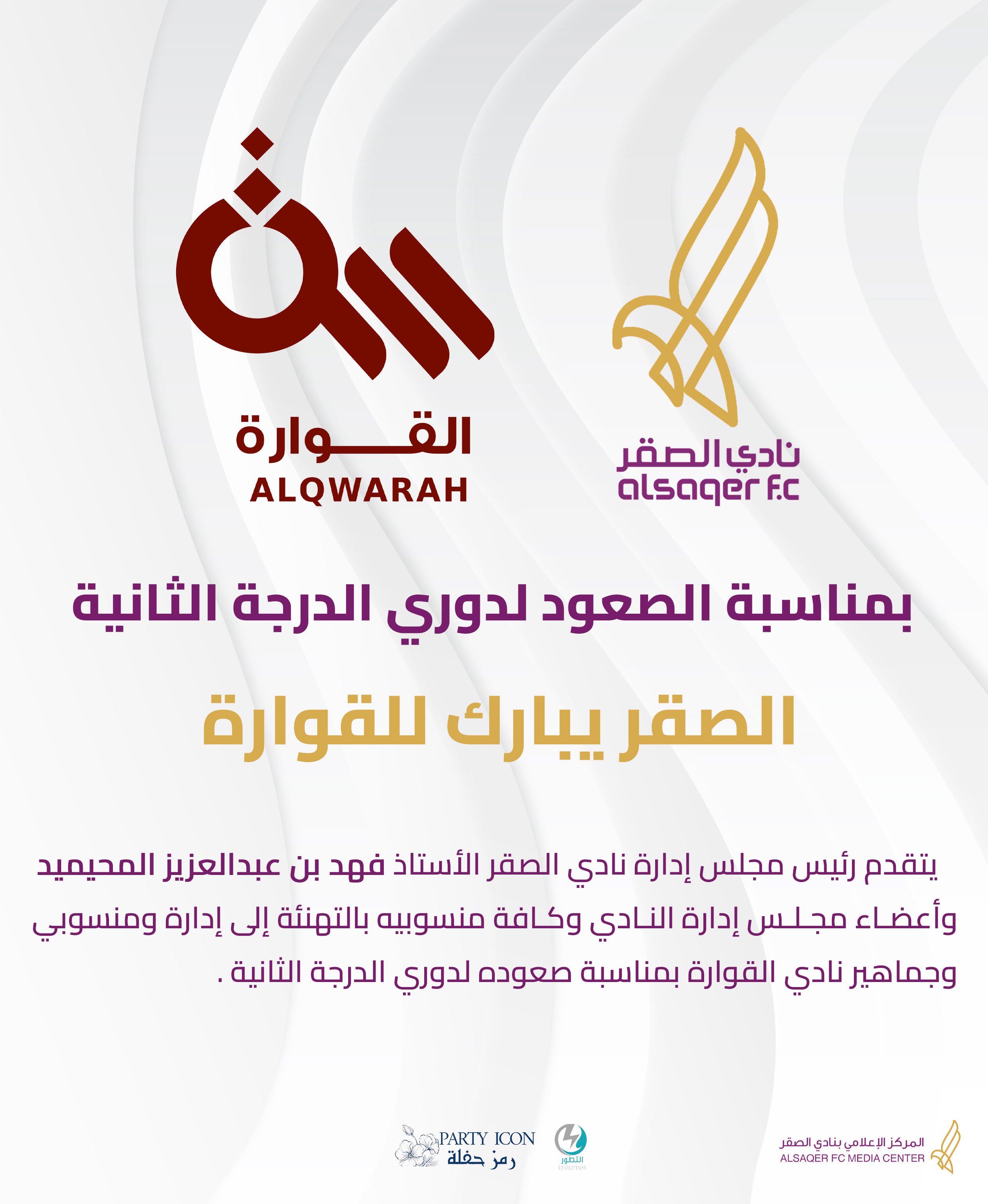 أخبار عامة 🟣 مبروك لـ القوارة نادي الصقر 21 Feb 03:30 pm بمناسبة صعوده لـ #دوري_الدرجة_الثانية الصقر يبارك لنادي #القوارة #نادي_الصقر