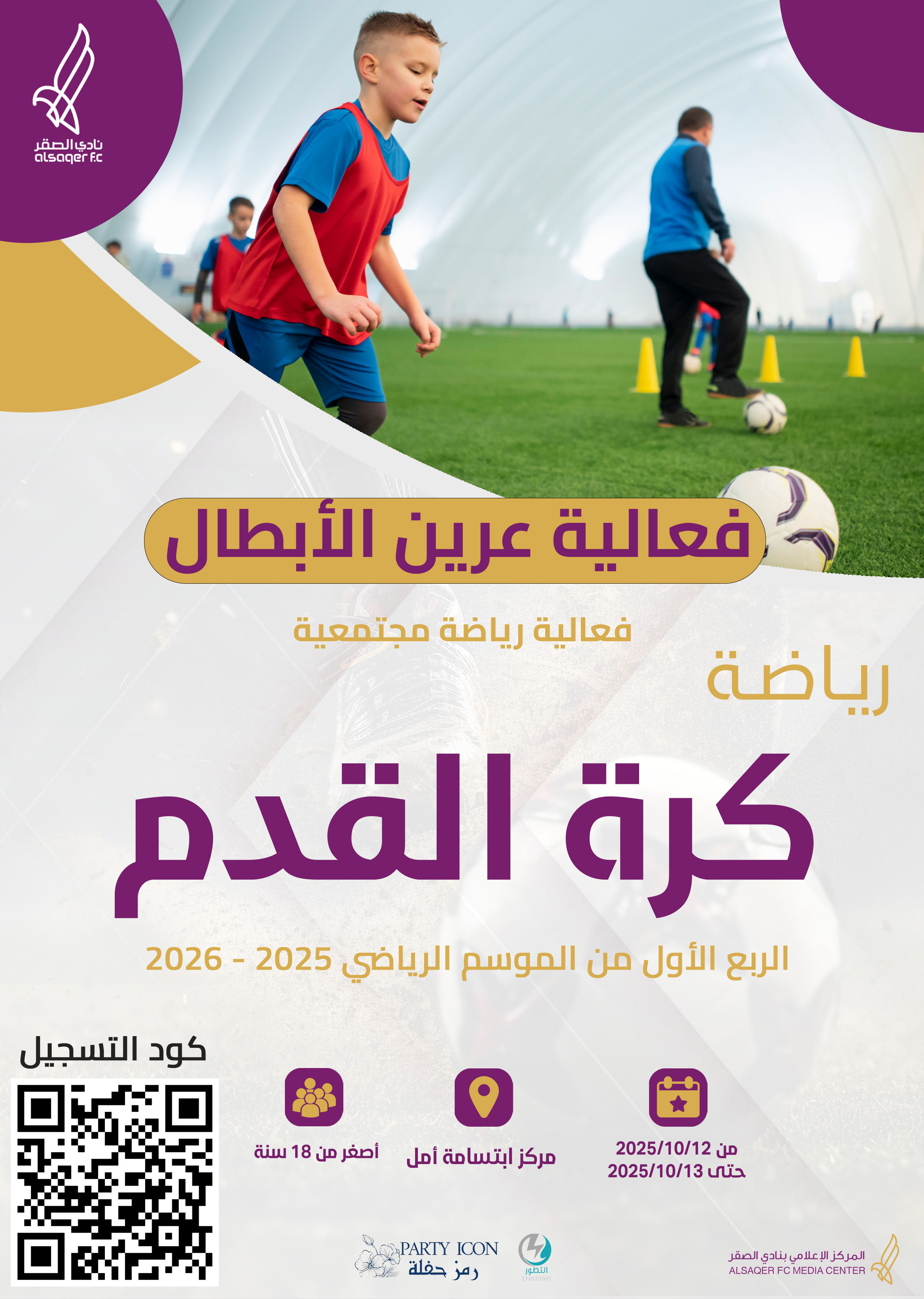 ضمن الفعاليات المجتمعية يطلق #نادي_الصقر فعالية عرين الأبطال رياضة خاصة لـ"كرة القدم"⚽️ للتسجيل عبر الكيو ار كود أو عبر الرابط https://t.co/smyEPuctcA